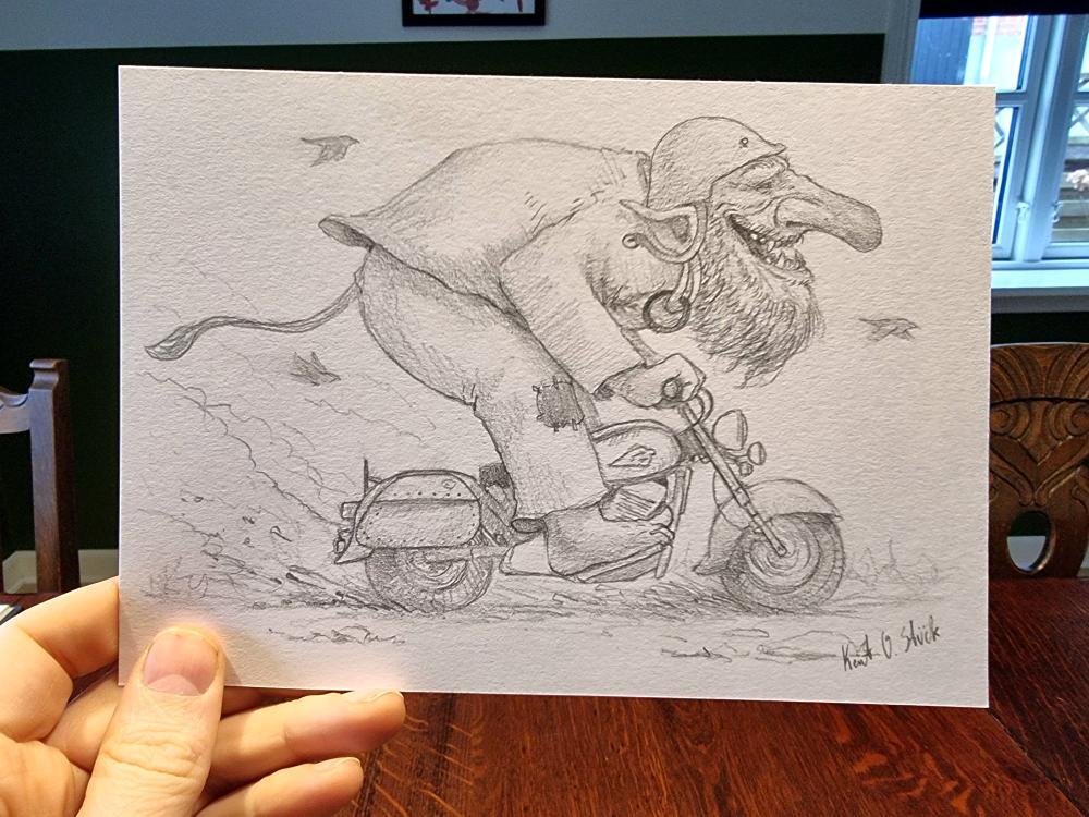 Lille, hurtig, sjov og personlig tegning til en motorcykel entusiast.